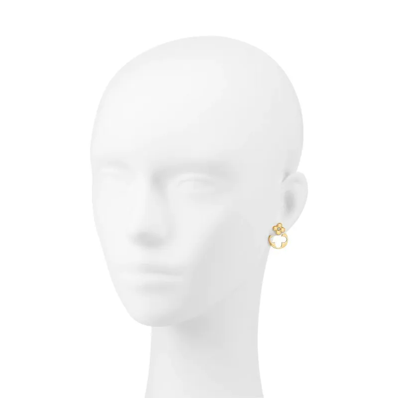 【製品仕様】品番:M00770ピアス前面の直径:1 cm、背面の直径:1.5 cm金具(色:ゴールド)モノグラム・フラワー モチーフ