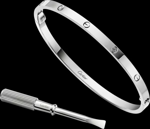 Love ブレスレット、スモールモデル、イエローゴールド750/1000、機能的なビス&ヒンジの留め具。スクリュードライバー付き。幅:3.65mm。 1969年にニューヨークで誕生したLove ブレスレットは、ジュエリーデザインのアイコン。リジッドな2つの半円で構成されるオーバル型のブレスレットは、手首にしっかりとフィットし、取り外しには専用のスクリュードライバーを使用します。スクリュードライバーを使って一人で着脱できるLove ブレスレットのオリジナルストーリーは、ヒンジ付きバージョンで続いていきます。同じデザイン、同じストーリー、スクリュードライバーで留められたタイムレスなクリエイション。 Love ブレスレットのサイズを決める際は、手首を測ります。ぴったり着用される場合は1cm、ゆったり着用される場合は2cm追加してください。