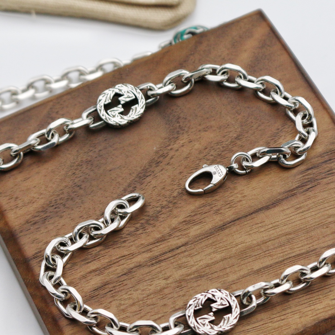 ブランド創設者グッチオ・グッチのイニシャルを組み合わせたインターロッキングGは、1960年代に登場して以来、グッチを象徴するモチーフとしてさまざまなフォルムやデザインでリニューアルされてきました。Ouverture コレクションでは、インターロッキングGがカラフルにアレンジされシルバーのネックレスを彩ります。