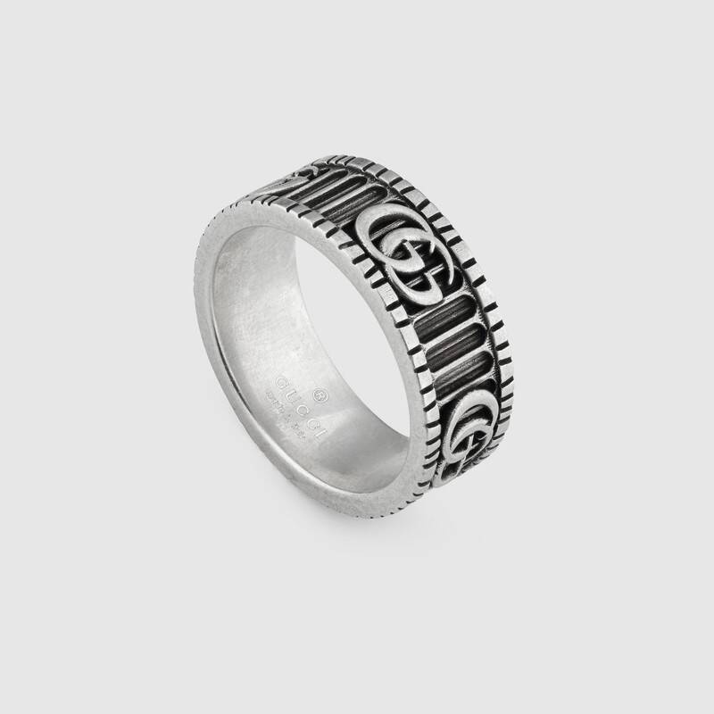 ダブルGは常にブランドデザインに欠かせない要素です。 70年代のグッチコレクションベルトのデザインとモダンな美学を組み合わせたユニークなダブルGは、スターリングシルバージュエリーシリーズの絶妙な彫刻パターンを補完します。 ツートンカラーのエフェクトと立体的なストライプのデザインが対照的な美学を生み出し、象徴的なブランド要素が細いリングにレイヤーを追加します。