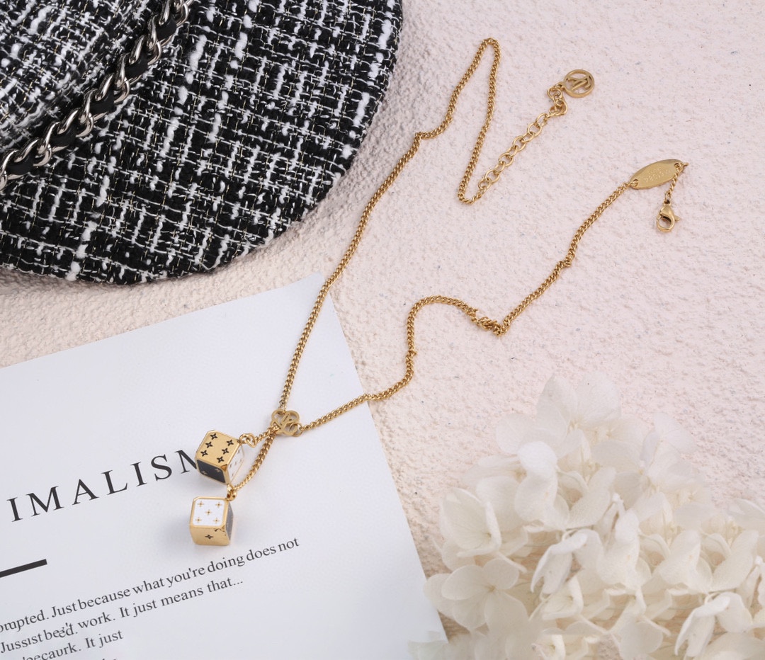 ネックレスはゲームの世界からインスピレーションを得て、サイコロの形をしたエナメルペンダントを繊細なチェーンに軽く吊るし、女性のアートディレクターであるニコラジェスキエールによる2021年初春シリーズのテーマを引き継いでいます。