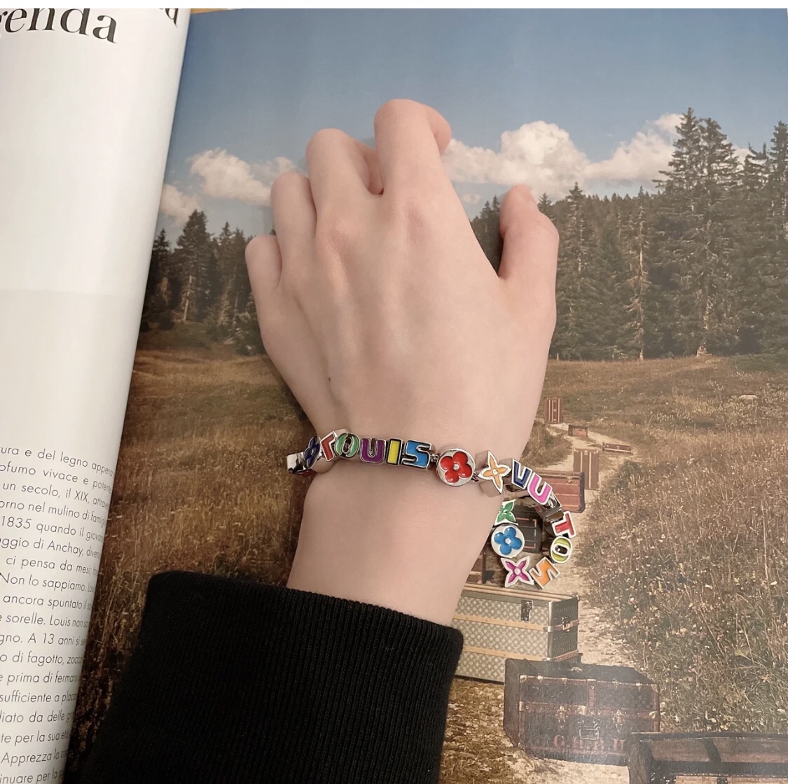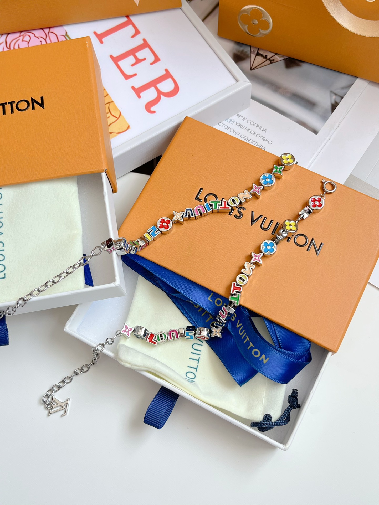 新しいモノグラムパーティーブレスレットは、2022年春夏コレクションの楽しいビーズと装飾を組み合わせたものです。 太い文字がLouisVuittonのロゴを綴り、ネックレスとイヤリングに合わせてハンドセットのクリスタルがきらめきます。詳細な機能