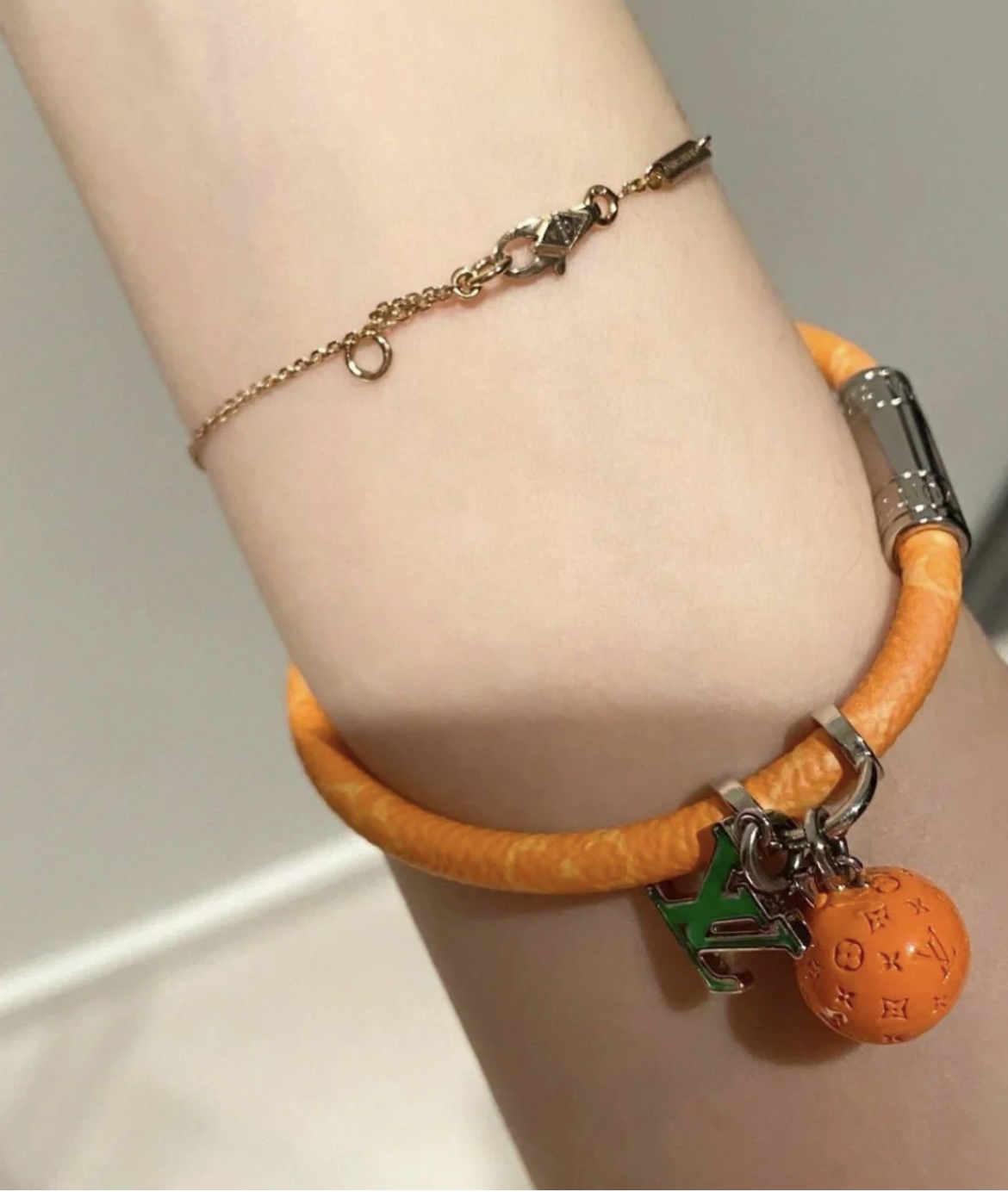Hang It LV Fruitsブレスレットは、2022年春夏コレクションのテーマを強調し、クラシックな要素とモノグラムキャンバスロープに季節の色を加え、メンズファッションジュエリーコレクションのネックレスとリングと組み合わせています。