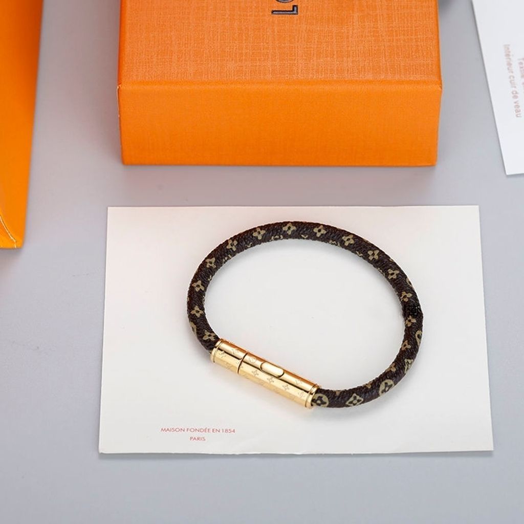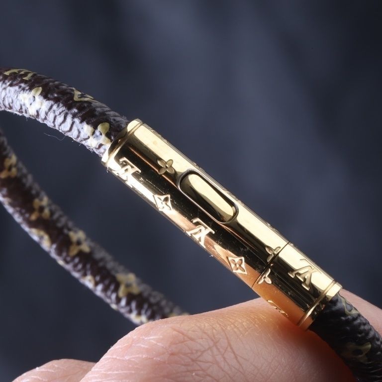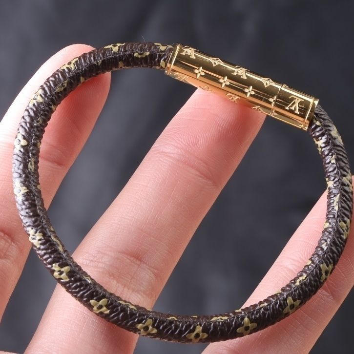 クラシカルなモノグラム・キャンバスを単層デザインで使用し、開閉部にモノグラム・パターンを丁寧に刻印したブレスレットは、他のブレスレットとの重ね付けも簡単で、お気に入りの装いを華やかに彩ります。