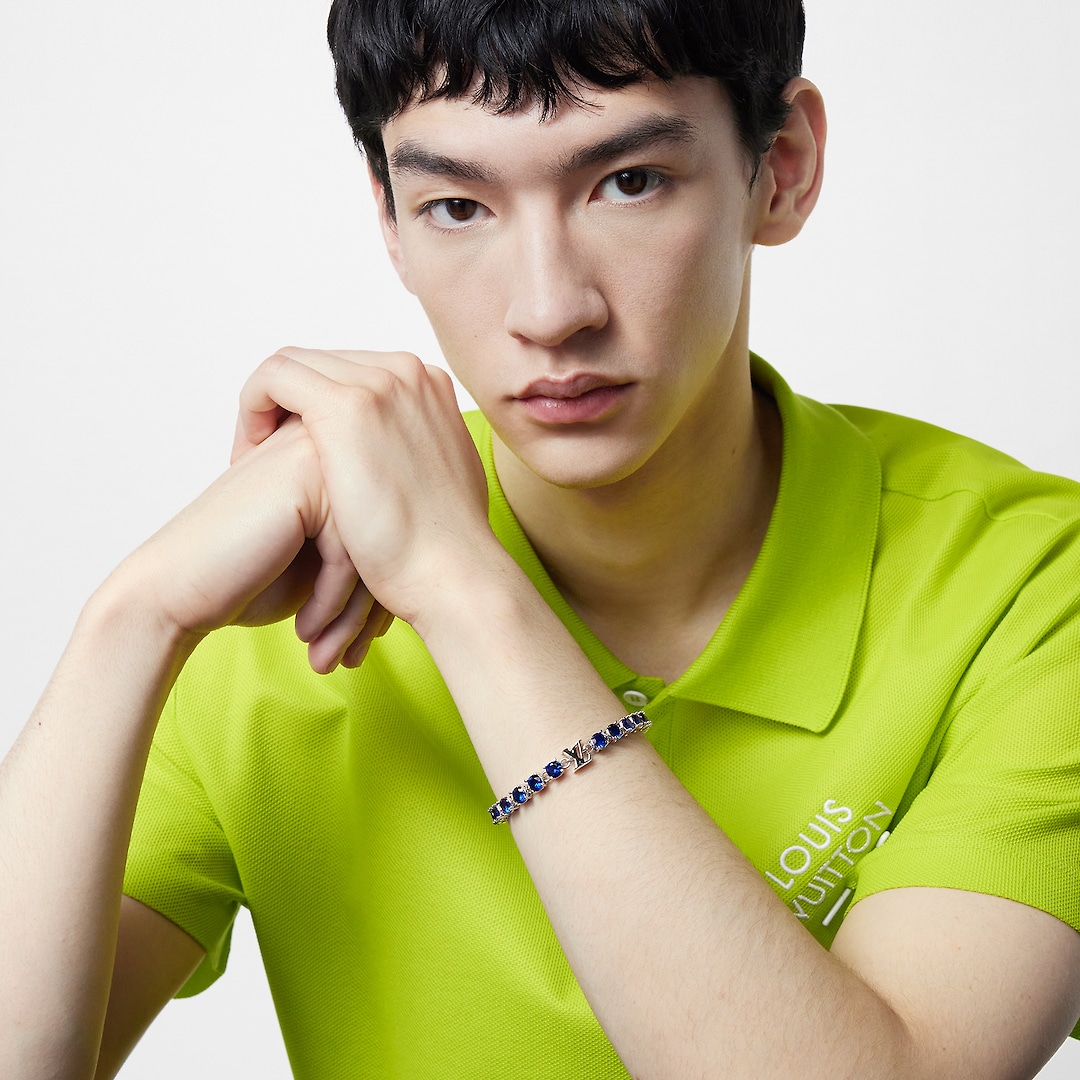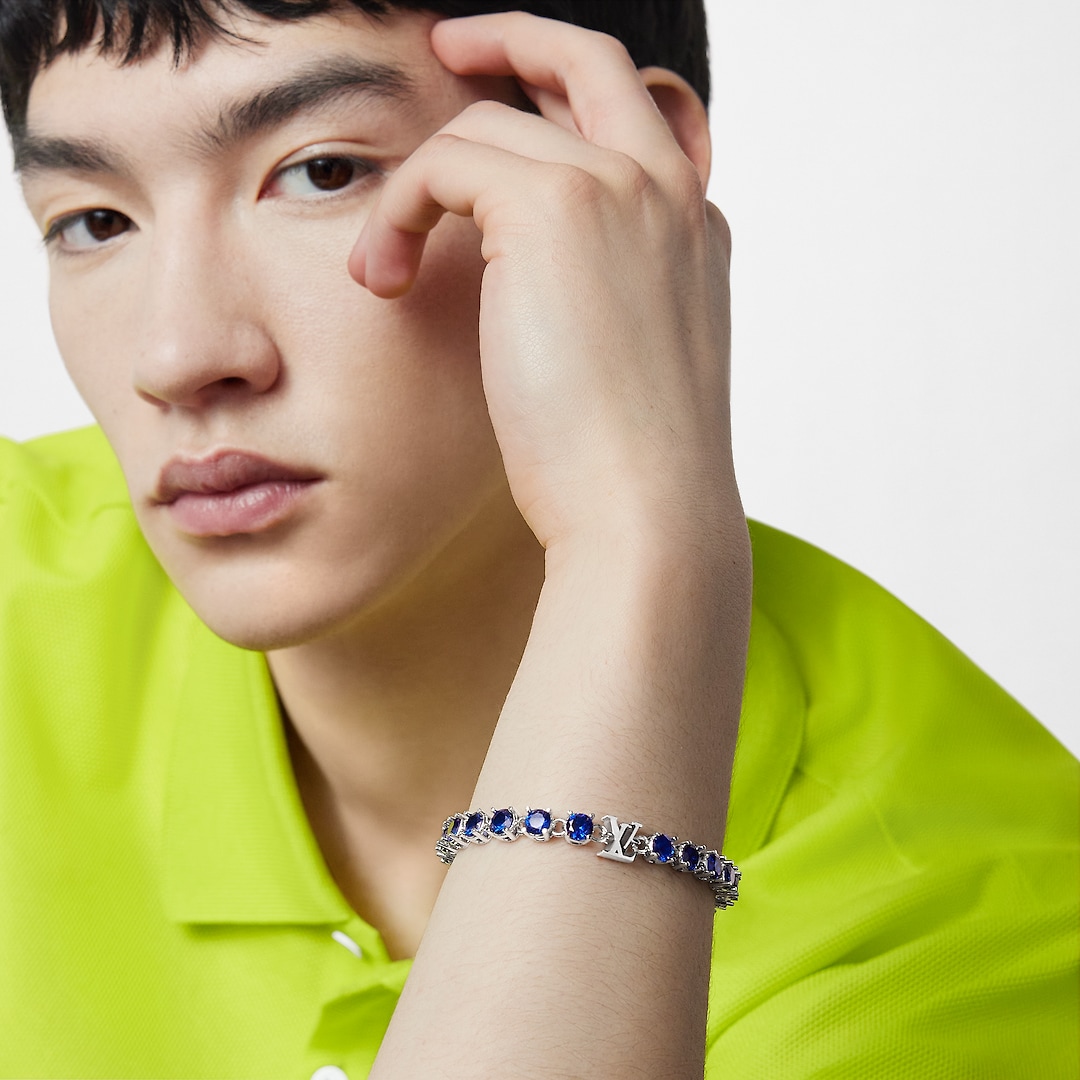 LV クリスタル ブレスレットは、ポリッシュメタルのリンクにラウンドカットのジルコンを手作業でセットし、あらゆる動作で明るく輝きます。 LVモノグラムの装飾とモノグラムの花の刻印フック留めが細部を完成させます。