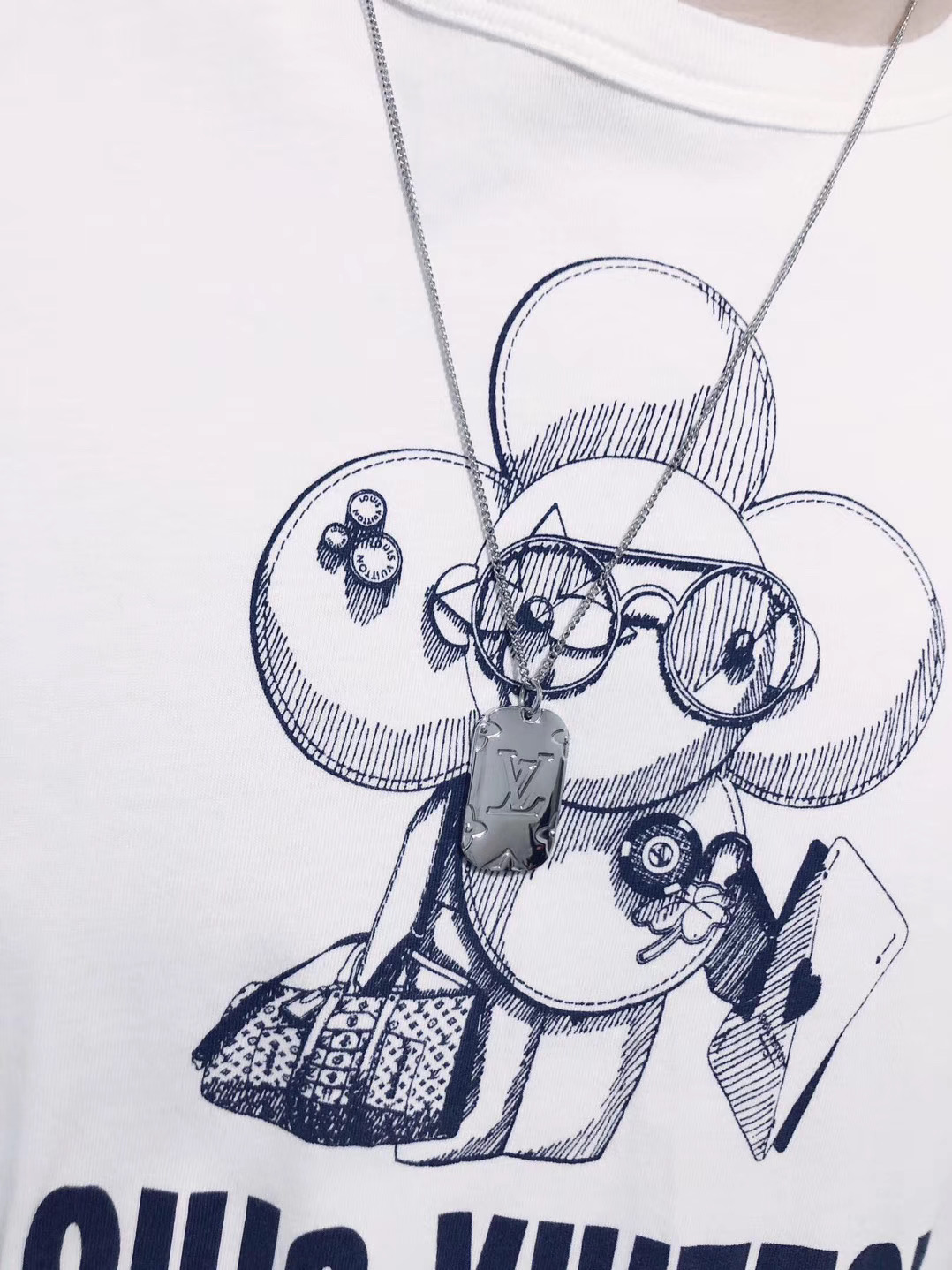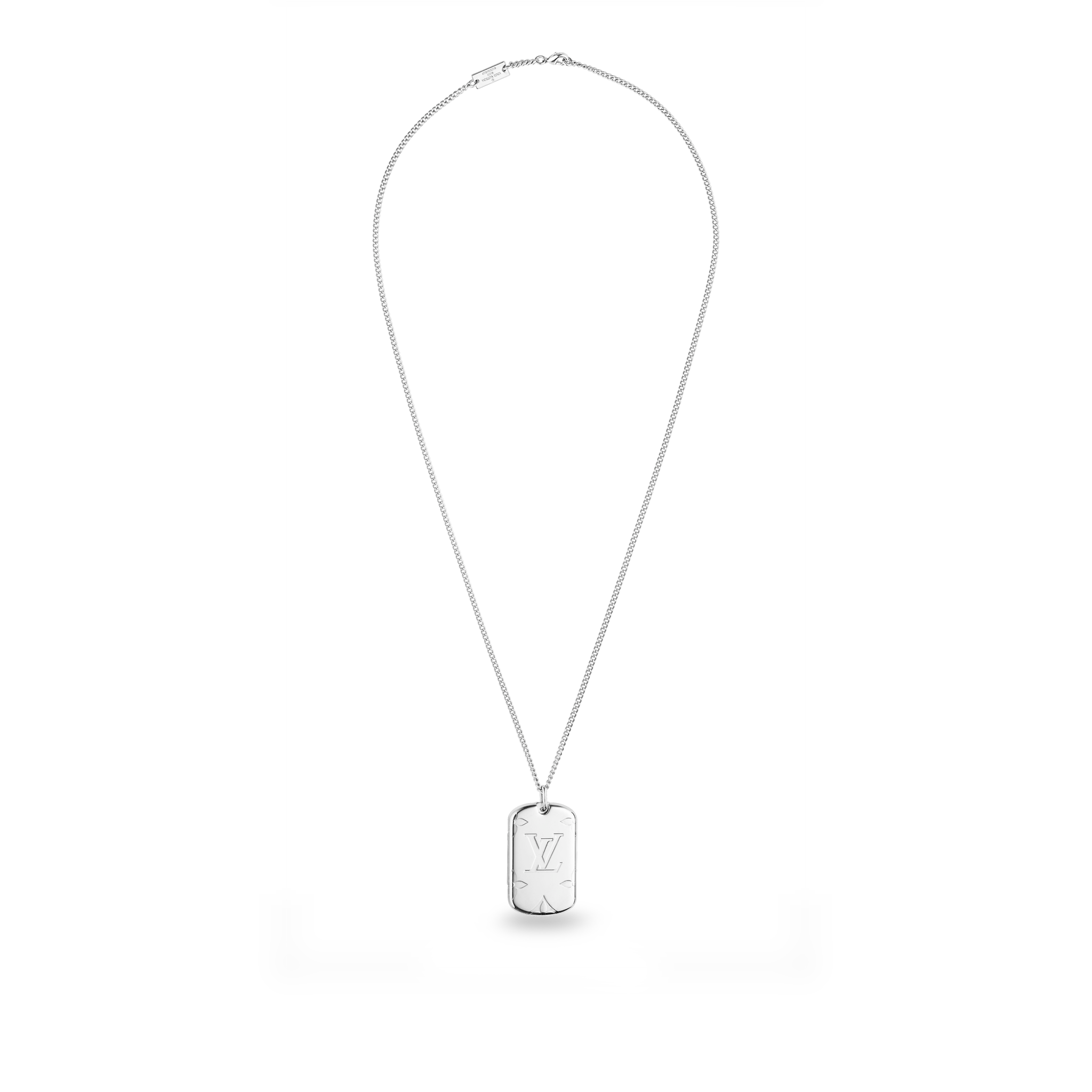 モノグラム ジュエリー コレクションは、精巧なモノグラム エングレービングと光沢のある金属仕上げを組み合わせ、独特のデザイン パーソナリティとタフなスタイルを表現しています。 このペンダント ネックレスは調節可能なデザインが特徴で、小さなフォト ホルダーが付いています。