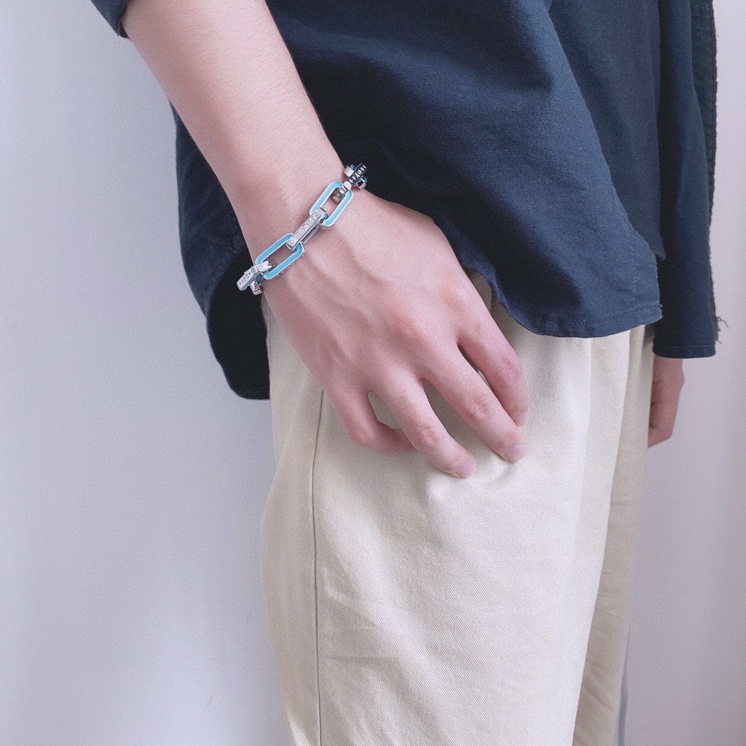 手作業で磨かれたカラフルなエナメルがブレスレットにモダンな外観を与えます。 頑丈なリンクは、モノグラムチェーンコレクションのクラシックなデザインを反映した、複雑に刻まれたモノグラムモチーフを備えています。 カラフルで、一日中快適な安全バックルが付いています。