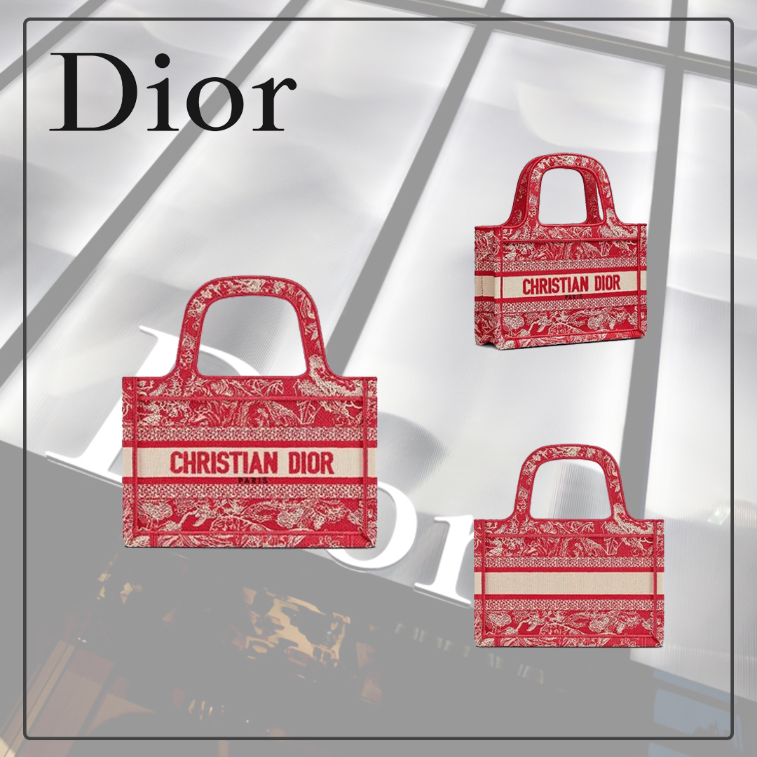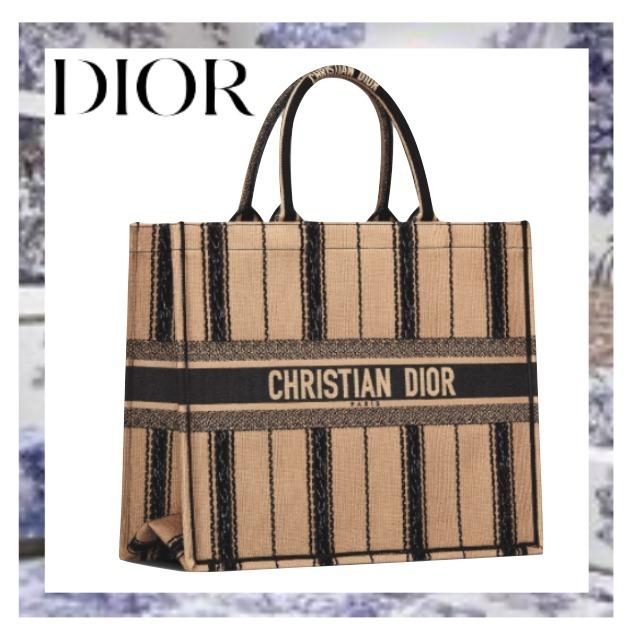 【ディオール】◆人気 BOOK TOTE 定番柄刺繍 トートバッグ-3 sizes
